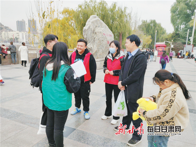 除了沿河邊取樣檢測水質(zhì),志愿者還兵分兩路開展了隨機調(diào)查問卷。一路志愿者沿河徒步5公里左右,向河邊散步休閑的市民發(fā)放問卷,另一路志愿者在游客居多的中山橋發(fā)放問卷。對于問卷涉及的黃河母親日是哪一天、平時關(guān)于保護家鄉(xiāng)山水的意識等問題,不少市民給出了自己的答案,同時也提出了非常寶貴的建議。