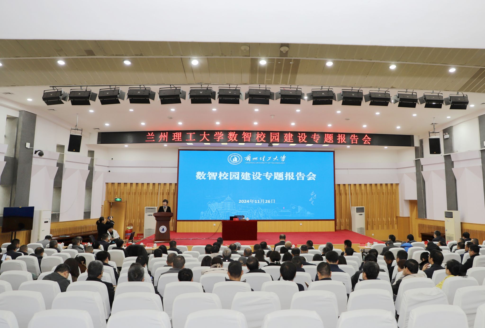 11月26日上午,蘭州理工大學數智校園建設報告會在蘭工坪校區逸夫科技館二樓報告廳舉辦。學校黨委書記趙立香,中國移動通信集團甘肅有限公司黨委書記、董事長、總經理霍偉,武漢理工大學信息化辦公室主任馬斌、教育部信息網絡工程研究中心特聘專家羅霄翔博士等出席,黨委副書記郭旭雋主持。