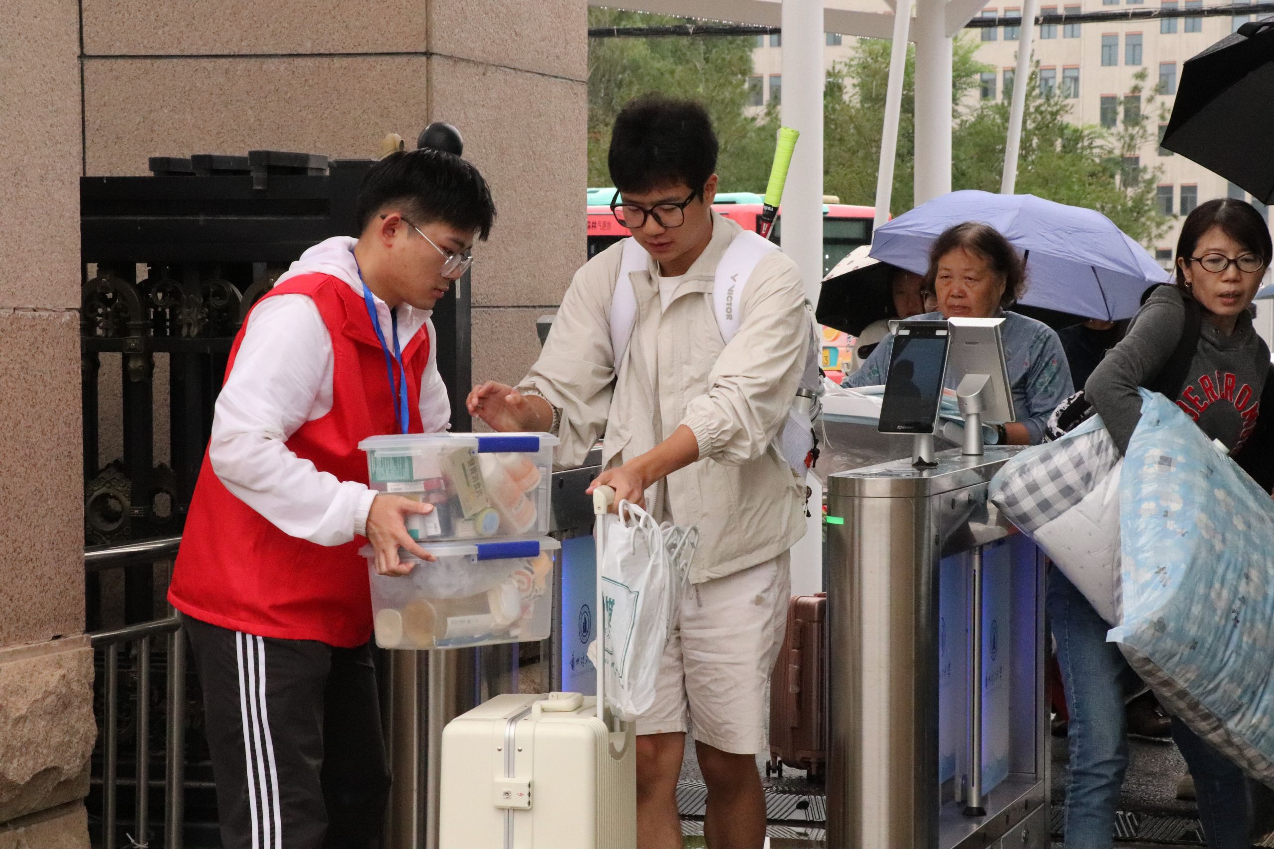 從“智慧安防”的精準(zhǔn)布控,到“人文關(guān)懷”的溫情浸潤,蘭理工營造安心求學(xué)港灣。環(huán)境場地保障組(后勤保障部、基礎(chǔ)建設(shè)處、能源服務(wù)中心和國家大學(xué)科技園管理委員會(huì)辦公室)提前完成場地布置,整潔優(yōu)美的校園環(huán)境、設(shè)施齊全的家長休息區(qū)和行李寄存處,處處體現(xiàn)著用心。住宿接待組提前做好宿舍分配,確保新生抵達(dá)后能快速入住。能源服務(wù)中心保障水電供應(yīng)正常,通勤車輛調(diào)度有序。醫(yī)療體檢組(校醫(yī)院)在兩校區(qū)迎新現(xiàn)場設(shè)立應(yīng)急醫(yī)療點(diǎn),隨時(shí)準(zhǔn)備應(yīng)對(duì)突發(fā)身體狀況,為新生健康安全保駕護(hù)航。治安保衛(wèi)組(安全與應(yīng)急工作處)提前規(guī)劃入校通道和標(biāo)識(shí)標(biāo)線,有效引導(dǎo)人流車流,維護(hù)各報(bào)到點(diǎn)及校園周邊秩序,為迎新工作創(chuàng)造了安全、穩(wěn)定、和諧的校園環(huán)境。宣傳報(bào)道組及時(shí)捕捉迎新動(dòng)態(tài),全方位展現(xiàn)學(xué)校迎新工作的有序與溫暖。