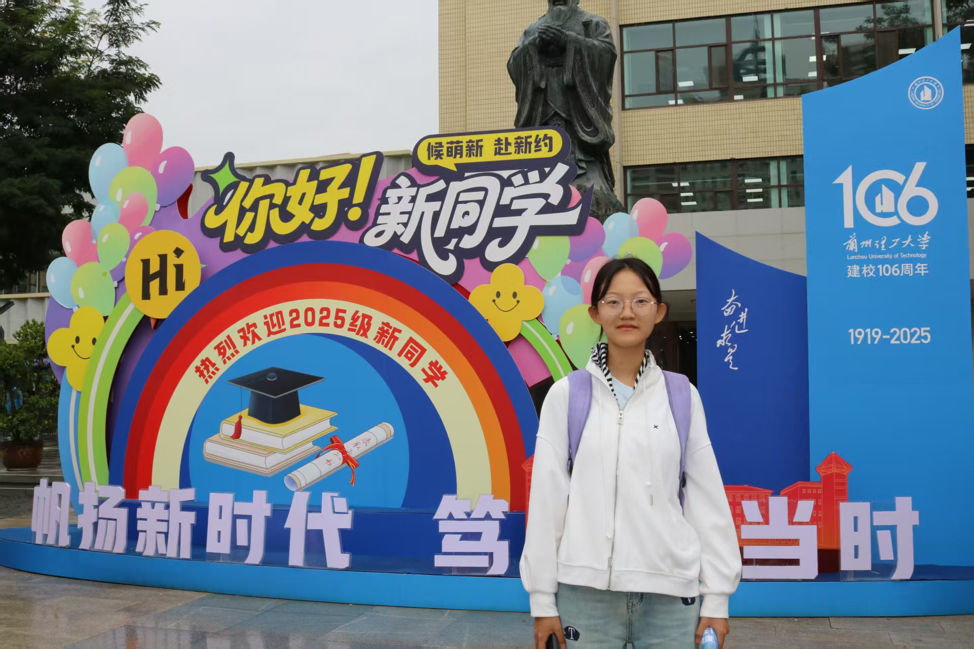 “非常榮幸能夠加入蘭州理工大學(xué),我對(duì)未來在這里的大學(xué)生活滿懷期待。”2025級(jí)能源與動(dòng)力工程學(xué)院新生李泳穎說。8月27日,隨著第一批接站車輛順利抵達(dá)兩校區(qū)校園,以校訓(xùn)、歡迎新同學(xué)為主題背景的展板躍然眼前,“奮進(jìn)求是”四個(gè)字筆畫里寫滿5843名新生的名字,生動(dòng)詮釋了“每位學(xué)子都是校訓(xùn)書寫者”的深刻內(nèi)涵。校園道路上,到處擺放著“秋陽映照梧桐葉,正是學(xué)子起航日”“秋風(fēng)過耳|與青年說 奮進(jìn)正當(dāng)時(shí)”為主要內(nèi)容的新生打卡點(diǎn),為每一位新學(xué)子開啟求知問道的璀璨征程,蘭州理工大學(xué)2025年迎新工作正式拉開帷幕。