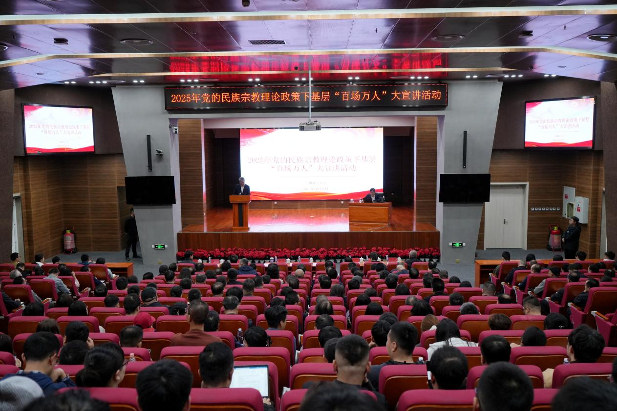 10月15日,2025年黨的民族宗教理論政策下基層“百場萬人”大宣講活動在學校彭家坪校區問鼎堂106報告廳舉辦。省民委黨組成員、副主任張樹杰應邀作輔導報告。省民委文化教育處一級調研員才讓多杰,校領導,全體中層干部、輔導員、班主任和馬克思主義學院教師代表共300余人參加了宣講活動。黨委副書記、校長冀宏主持宣講活動。