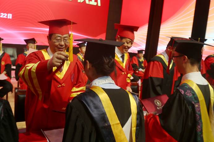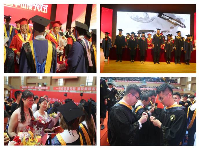 黨委常委、副校長俞樹榮宣讀《關(guān)于準(zhǔn)予研究生、本科生畢業(yè)的決定》;副校長李仁年宣讀了《關(guān)于授予博士學(xué)位、碩士學(xué)位、學(xué)士學(xué)位的決定》;黨委常委、副校長曾華輝宣讀了《關(guān)于表彰2019屆優(yōu)秀畢業(yè)生的決定。學(xué)校領(lǐng)導(dǎo)共同為畢業(yè)生代表授予學(xué)位,為獲獎(jiǎng)畢業(yè)生學(xué)生代表頒發(fā)榮譽(yù)證書。