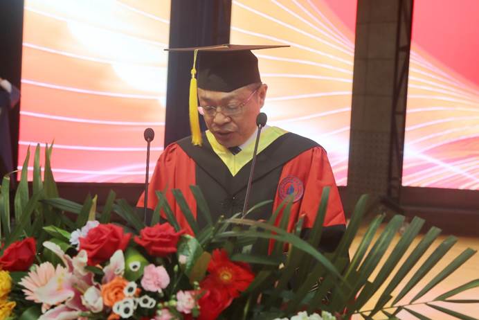 副校長俞樹榮宣讀《關(guān)于準(zhǔn)予研究生、本科生畢業(yè)的決定》