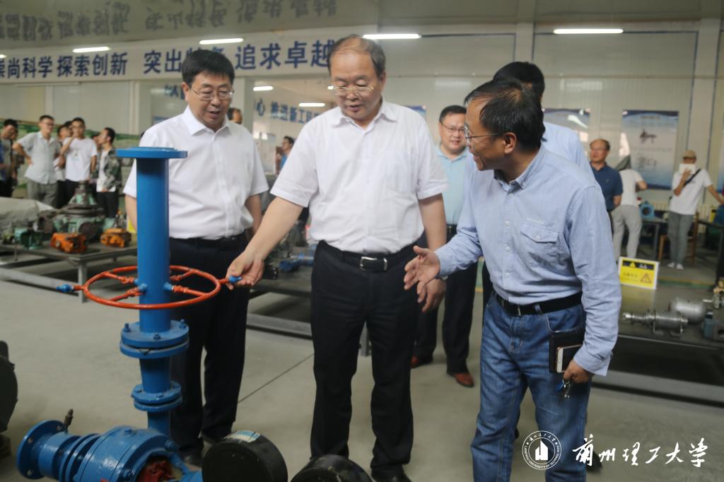 7月3日下午,甘肅省科學技術廳黨組書記、廳長史百戰一行來蘭州理工大學調研指導科技創新與成果轉化工作情況。學校黨委書記夏天東,黨委常委、副校長俞樹榮,王全進參加活動。