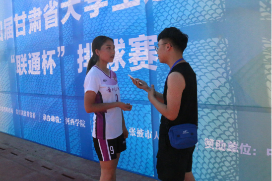 女排比賽首場對戰甘肅衛生職業學院,以3:1取勝贏得開門紅。在下午舉行的第二場比賽中以3:0戰勝蘭州交通大學博文學院。我校女排代表隊精湛的技術和良好的心理素質,贏得場外觀眾陣陣喝彩,賽后,張掖電視臺、河西學院電視臺和相關媒體記者分別采訪了女排教練楊建文老師及隊員馬雪、梅雅芳。