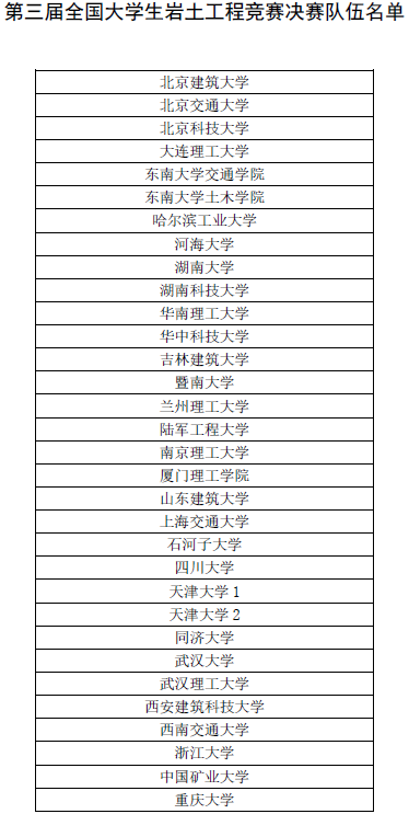 全國大學生巖土工程競賽每兩年舉辦一次,是巖土工程領域規格最高的競賽活動,只對通過住建部評估的高校發出邀請,本次比賽有近50所全國高校代表隊參加初賽,通過指導委員會組織專家對各代表隊初賽作品進行雙向盲審,最終同濟大學、東南大學、浙江大學、天津大學以及蘭州理工大學等高校的32支代表隊進入決賽。