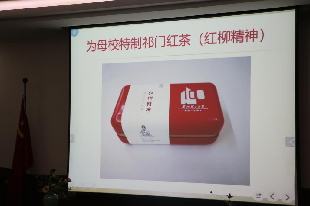 目前主要從事茶葉生產(chǎn)經(jīng)營的洪治校友特制一款“紅柳精神—鴻志祁門紅茶”,并為母校捐贈2000盒,希望以此特殊的方式,表達(dá)對母校的感恩,慶賀母校百歲生日。他介紹,祁門紅茶位列世界三大高香茶之首,是世界上最好的紅茶。此次為母校定制的茶葉采用他多年來的核心研發(fā)技術(shù),包裝選用紅罐,以“紅柳精神”命名,彰顯母校之精神,寓意母校百年華誕之喜慶。茶話會上,洪治攜家人,為與會人員做“百年華誕,我敬母校一杯祁門紅茶”的文化演講,并現(xiàn)場為大家沖泡敬獻紅茶。