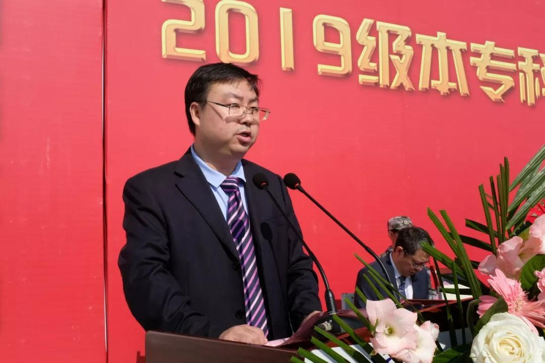 教師代表、2019年學校師德標兵土木學院副院長殷占忠說,作為一名土生土長的理工大人,在新中國成立70周年、學校迎來建校100周年的歷史時刻,我感到由衷的幸福和光榮,也深知肩上的責任重大。如何由一名蘭州理工大學的新生,真正成長為“奮進求是”的紅柳驕子,是大家需要用未來四年,甚至更長時間來回答的問題。我有兩點體會與大家交流。第一,要積極面對挫折的挑戰,并在戰勝挫折的過程中成長。你可能第一次遇到上課聽不懂、作業不會做的狀況,第一次發現“學霸”的稱號似乎正在離開自己,第一次身邊有這么多明明可以靠顏值吃飯,卻偏偏還那么努力的小伙伴,自己好像在哪方面都不如他們,甚至,你可能會遭遇人生中的第一次不及格。如何應對這些不如意甚至挫折,是你很快將要面臨的考驗,同學們要始終以校訓精神自勉,以紅柳精神為前進的不竭動力,不忘追求卓越的初心。第二,要志存高遠,樹立明確的目標,選擇自己的人生方向。一個明確的目標,尤其是通過你自己的深入思考后自主選擇的目標,會成為真正推動你主動學習、深入鉆研、克服各種困難和挑戰、不斷前行的強大動力。要做出這樣的選擇,除了“立大志、入主流、上大舞臺、成大事業”的抱負和擔當外,還需要注意發現自己的興趣和特長所在,由此明晰自己的人生規劃。作為教師,我們早已做好準備,我們愿傾我們所有,全力以赴。因為我們深知,你們是幸福的,我們就是快樂的,你們是進步的,我們就是欣慰的,你們是成功的,我們才是優秀的。