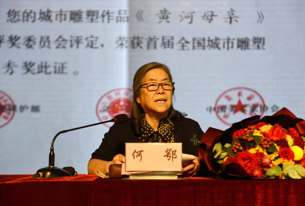 何鄂簡介: 何鄂,現為中國雕塑學會專家顧問、全國城雕藝委會專家顧問、中國建設文化藝術協會環境藝術專業委員會專家、中國藝術研究院中國雕塑院特聘雕塑家、甘肅省美術家協會名譽主席、甘肅何鄂雕塑院院長,享受國務院政府特殊津貼。先后獲得“中國工藝美術大師”“中國工藝美術終身成就獎”“全國三八紅旗手標兵”“改革開放40年感動甘肅人物——工行杯隴人驕子”“隴原巾幗先鋒”等榮譽稱號,受聘為英國皇家藝術研究院“榮譽院士”“客座教授”。創作的代表性作品大型城市雕塑《黃河母親》獲“全國首屆城雕優秀獎”“新中國城市雕塑建設成就獎”;粗陶彩繪《繡花女》獲劉開渠雕塑藝術基金獎,被中國美術館收藏;《成吉思汗雕塑群》獲“全國城雕年度大獎”;青銅雕塑《海》獲“徐悲鴻獎”;《亞洲雕塑藝術主題公園》獲“中國環境藝術獎——最佳范例獎”;《工業文明交響》獲全國城雕優秀獎;《羊娃》獲法國盧浮宮國際美術展獲評委獎。曾舉辦個人雕塑展2次,組織策劃雕塑邀請展3次,參加大型重要展覽4次。