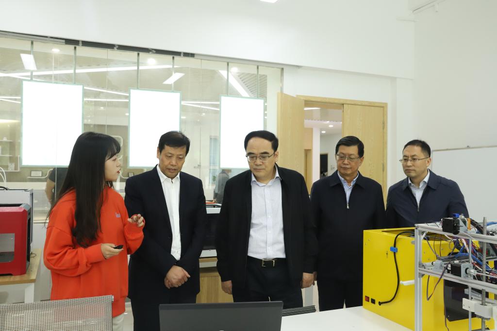 王光彥一行參觀了校史館、慶祝新中國成立七十周年暨百年校慶書畫展、彭家坪校區(qū)圖書館、紅柳創(chuàng)客夢工廠、易班發(fā)展中心等,詳細了解學校創(chuàng)新創(chuàng)業(yè)教育、科研成果轉化、大學文化建設,以及大學生網(wǎng)絡思想政治工作等。認真聽取了相關部門對辦學歷史、近年來學校發(fā)展工作匯報。