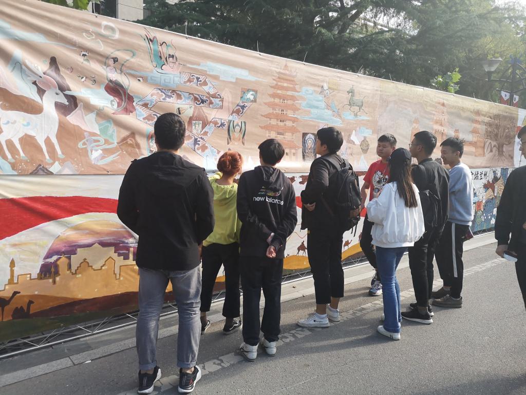 蘭理學(xué)子頌祖國(guó),攜手共繪中國(guó)夢(mèng)。9月26日上午,由蘭州理工大學(xué)學(xué)子繪制的“中國(guó)夢(mèng),我的夢(mèng)”百米主題畫卷在蘭工坪校區(qū)琢玉樓前展出。