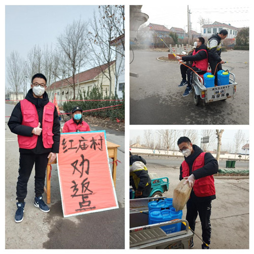 2016級化工一班的張宗浩積極報名桓臺縣志愿團,分配在紅廟村進行志愿服務工作。他與其他工作人員一起每天分班分點在勸返點值班,確保24小時不斷人,積極勸說無必要事務的鄉親們不出門不串門不聚會;對出入村里的人員做好登記,測好體溫確保整個村莊安全。做好村里的疫情消殺工作,四個人一組地毯式地對整個村莊不留死角全面消殺工作。