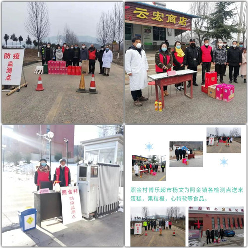 家住陜西省銅川市耀州區照金鎮照金村c區的2018級碩士研究生黨員楊晨與同為黨員的父親一起從自家超市為鎮上防疫工作檢測點捐贈了精品面粉、蛋糕、點心、礦泉水、飲料等物資。同時,他還加入了防疫先鋒隊,在小區門崗值班輪守,協助工作人員開展疫情防控工作。