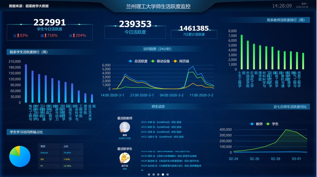 他介紹,截至3月1日,全校前四周共650門課程、1790個課程班全力開展線上教學準備,各項準備工作都已完成。今天,全校將有288門課、637個教學班開課,432名教師、44231人次學生將進行線上教學。
