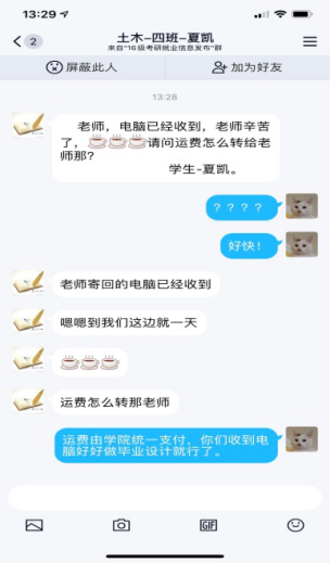 得知學院為學生免費郵寄電腦的消息,同學們紛紛表示對學院的貼心服務感到很溫暖:“疫情防控期間,我充分感受到學校的關心,學院及時幫助我們郵寄電腦,讓我減少了恐慌和焦慮,使得我們安心的在家完成所有學習任務。疫情很殘酷,學院的關心卻很溫暖,很感謝學校和學院!”“雖然相隔千里,但學院老師的關愛卻像近在身邊一樣,溫暖備至。我一定好好做畢業設計,爭取拿個優秀!”