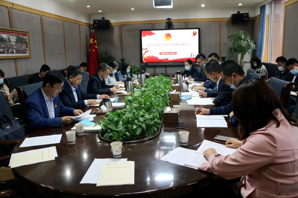 5月7日上午,學(xué)校在蘭工坪校區(qū)八號樓三樓會議室召開學(xué)習(xí)習(xí)近平總書記五四寄語座談會,學(xué)校黨委書記夏天東,黨委常委、副校長曾華輝,歷屆甘肅青年五四獎?wù)录疤崦劔@得者,校團委全體干部、各基層團組織負(fù)責(zé)人參加會議,會議由校團委書記黨渭平主持。