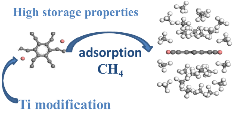 陳玉紅教授課題組研究發現,通過改性的石墨烯和石墨炔類材料CH4儲存量分別可達到32.93 wt.%和55.24 wt.%,對于甲烷儲存量而言是突破性的發展,尤其是石墨炔已經超過了美國能源部提出的車載CH4的儲能目標。此研究在其領域內已發表兩篇SCI論文,分別發表于Advanced Materials系列期刊Advanced Theory and Simulations, 2020, https://doi.org/10.1002/adts.202000035,并收到封面邀請(論文第一作者為碩士研究生趙英杰)和物理化學領域Top期刊The Journal of Physical Chemistry C, 2020, 124(15): 8110?8118. https://doi.org/10.1021/acs.jpcc.9b12009)(論文第一作者為碩士研究生胥文慧)。