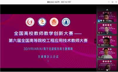 2020年5月19日,由蘭州理工大學(xué)主辦的“全國(guó)3D大賽、全國(guó)高等院校工程應(yīng)用技術(shù)教師大賽——3D/VR/AR/AI數(shù)字化虛擬仿真主題賽項(xiàng)”甘肅賽區(qū)工作啟動(dòng)會(huì)在云端順利召開。參加本次會(huì)議的有甘肅賽區(qū)組委會(huì)主任、蘭州理工大學(xué)黨委常委、副校長(zhǎng)韋堯兵教授,全國(guó)3D/VR技術(shù)推廣服務(wù)與教育培訓(xùn)聯(lián)盟(3DDL)秘書長(zhǎng)、3D動(dòng)力副總裁劉曉青先生,全國(guó)3D/VR/AR/AI教師大賽評(píng)委、北方工業(yè)大學(xué)胡福文教授,全國(guó)三維數(shù)字化創(chuàng)新設(shè)計(jì)大賽組委會(huì)執(zhí)行秘書長(zhǎng)匡偉先生以及甘肅省內(nèi)各高校領(lǐng)導(dǎo)和教師代表近百人,會(huì)議由甘肅賽區(qū)組委會(huì)執(zhí)行秘書長(zhǎng)、蘭州理工大學(xué)機(jī)電工程學(xué)院副院長(zhǎng)彭斌教授主持。