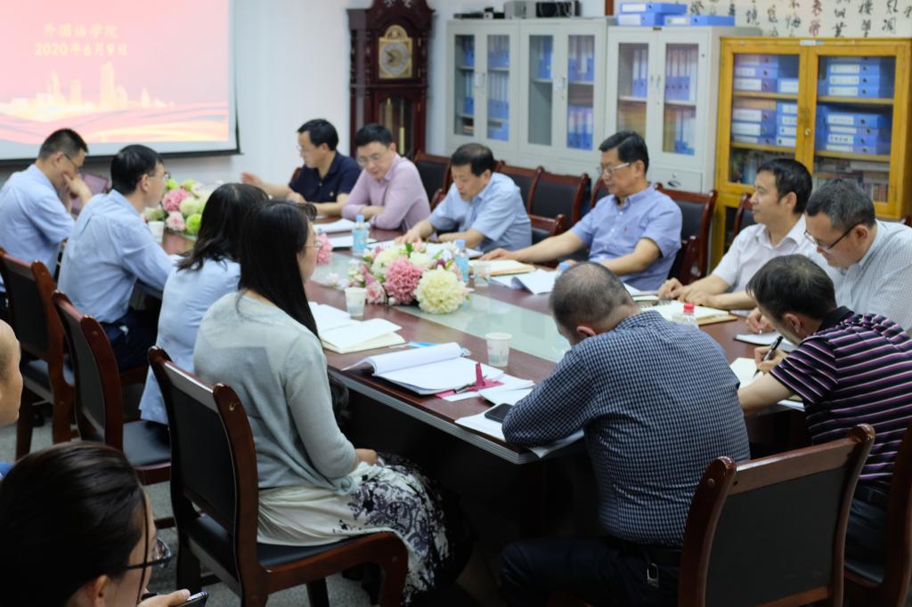 6月9日下午,學校黨委副書記、校長芮執元,黨委常委、副校長韋堯兵,副校長胡潔,事業發展處處長何衛平,教務處處長韓建平、副處長劉永平一行赴外國語學院調研大學英語教學改革工作。學院領導班子、各教學基層組織負責人和教師代表參加會議。
