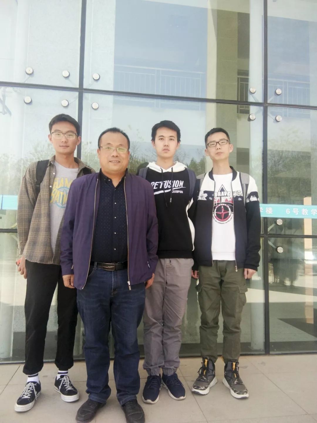 周超杰(右一)與隊友田俊彤(中)、劉淇(左一)畢業前合影,目前三人都已成功保研。