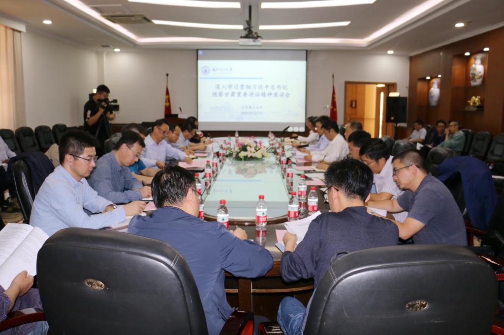 座談會上,與會人員重溫了習近平總書記2013年2月視察甘肅、2019年3月全國兩會參加甘肅代表團審議和2019年8月視察甘肅時的重要講話和指示精神,以及習近平總書記2016年在哲學社會科學工作座談會上的重要講話;傳達了甘肅省社科理論界學習貫徹習近平總書記視察甘肅重要講話精神座談會的會議精神;通報了2016年以來學校人文社會科學方面的工作情況。參會人員,圍繞學習貫徹習近平總書記視察甘肅重要講話精神,圍繞加快建設幸福美好新甘肅、不斷開創富民興隴新局面的時代篇章,圍繞學校第三次黨代會的發展目標,結合學校正在謀劃“十四五”發展規劃,推動學校高質量發展,為甘肅發展提供獨特的高校智力支持,作了交流發言和重點討論。