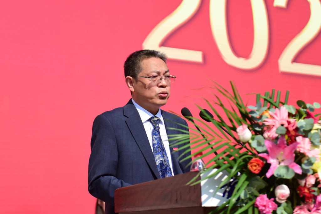 芮執元以“立志報國、擔當作為,做民族復興時代新人”為題作了講話。他說,感謝你們選擇了蘭州理工大學,蘭州理工大學有著深厚的底蘊,自1919年創建至今,始終伴隨著中華民族偉大復興的時代潮流,歷經百年艱苦卓絕的砥礪奮進,一所實力雄厚,特色鮮明、學術卓越的高等學府,卓然傲立于隴原大地,煥發著勃勃生機,成為廣大有志青年探索未知、成長成才的學術殿堂,被譽為“工程師搖籃”。今天,你們再一次為這個百年學府注入新的青春活力。他向同學們提出四點希望,一要立志愛國報國,做有堅定信仰的人。希望同學們牢固樹立對中國特色社會主義事業的政治信仰,堅定報效祖國、服務人民的家國情懷,將愛國之情、報國之志轉化為奉獻祖國、奉獻人民的不竭力量,這才是個人價值最美好的體現,才是青春之花最絢麗的綻放;二要探求科學真理,做有真才實學的人。希望同學們自覺鍛造科學精神,培養嚴謹的科學思維、自覺的批判意識、卓越的創新精神,努力成為可堪大用的棟梁之才;三要德智體美勞“五育”并舉,做全面發展的人。希望同學們重德育揚善、用智育啟真、尚體育強身、以美育塑心、愛勞育立行;四要始終務實篤行,做不懈奮斗的人,要理想堅定,不懼挫折,百折不撓,正確面對青春道路上的崎嶇和傷痛,敢于迎接困難和挑戰,始終保持奮斗者的姿態,鍥而不舍、馳而不息、埋頭苦學、不懈奮斗,在追夢征程上鐫刻青春芳華。他希望同學們只爭朝夕,不負韶華,用不懈奮斗書寫大學時代的精彩篇章。