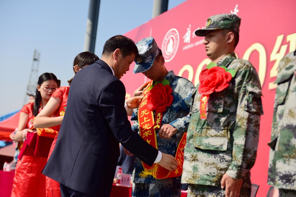 典禮上,與會領導為本科生新生代表佩戴了校徽,校徽不僅代表著“蘭理工人”的身份,更承載著“蘭理工人”的使命與榮光,帶上校徽,從此成為“紅柳學子”。