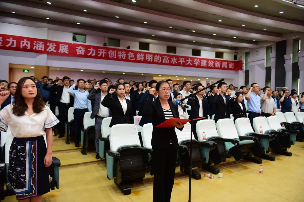 他表示,過去一年,學(xué)校堅持以習(xí)近平新時代中國特色社會主義思想為指導(dǎo),深入貫徹黨的教育方針,圍繞落實(shí)立德樹人根本任務(wù),把黨的領(lǐng)導(dǎo)貫穿于辦學(xué)治校、教書育人全過程,團(tuán)結(jié)帶領(lǐng)全校師生深入推進(jìn)內(nèi)涵式發(fā)展。他對全體教職工提出三點(diǎn)希望:一是不忘立德樹人的初心,要牢記為黨育人、為國育才使命;二是不忘立德樹人的初心,要有潛心教書育人的情懷;三是不忘立德樹人的初心,要不斷提升教書育人本領(lǐng)。
