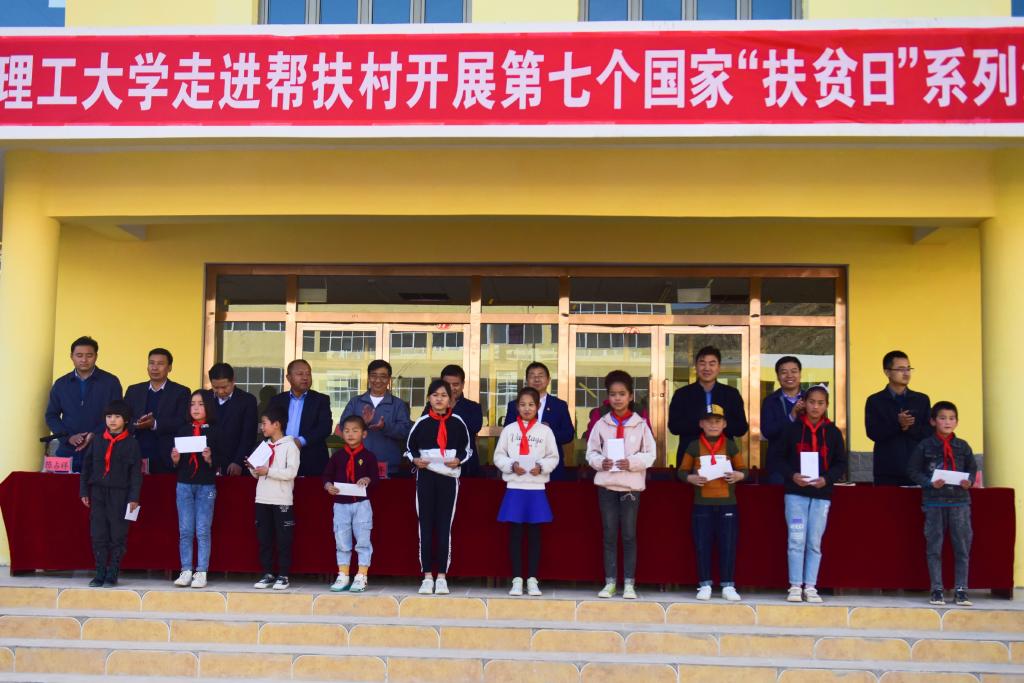 儀式上,學(xué)校對幫扶的6個村9所學(xué)校,2019—2020年表現(xiàn)優(yōu)異的609名中小學(xué)生進(jìn)行了表彰獎勵,其中包括463名小學(xué)生、144名中學(xué)生和2名考取大學(xué)的學(xué)生,發(fā)放金額26.64萬元。果園鎮(zhèn)中學(xué)校長和受資助學(xué)生代表分別發(fā)言,感謝蘭州理工大學(xué)對當(dāng)?shù)亟逃龀龅闹С謳椭閷W(xué)校贈送“情系教育、惟宏隆德”錦旗。