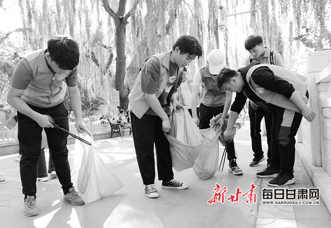 蘭州理工大環(huán)保協會會員在蘭州市黃河邊撿拾垃圾 掌上蘭州·蘭州晨報記者 趙鑫遠 攝