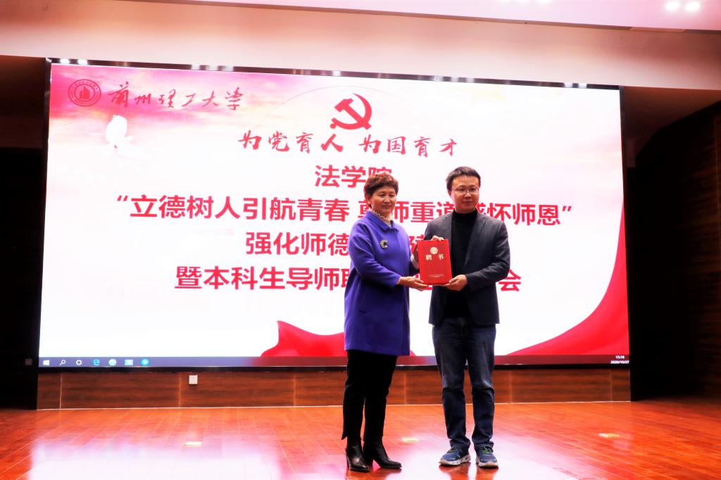 李香楓充分肯定了法學院切實推進師德師風建設,加強教學聯動開展的“本科生導師制”工作。她表示,法學院事業的每一次發展、每一個成就,都源于全體教師的砥礪奮進和執著追求。面對“十四五”開局之際所要承載的責任十分重大,必須深刻地認清形勢、轉變觀念、勇于擔當、奮發作為。為黨育人,為國育才,不折不扣落實“四有好老師”要求,齊心協力共同為法學院發展注入新的活力。她強調,全體教師要提高政治站位,強化使命擔當,不懈弘揚高尚師德,為學校事業發展、服務地方發展集聚奮斗力量做出貢獻!