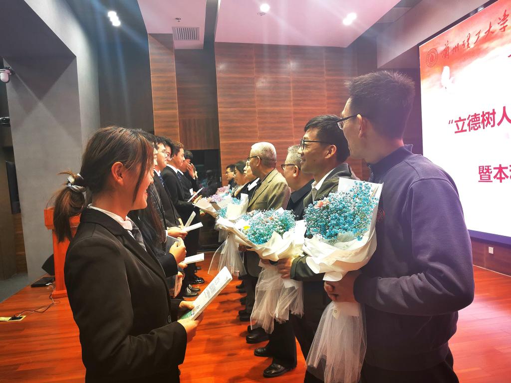 白小平介紹了法學院開展本科生導師制,教師結合立德樹人要求,以習近平新時代中國特色社會主義思想為指導,通過開展本科生導師制引導和幫助學生自邁入大學起把握好人生方向,扣好人生關鍵的第一粒扣子,構建“師生共同體”的實施意義與取得成效。袁崢嶸副教授結合擔任本科生導師期間的學生成長分享感悟,對新任導師立德樹人加強師德師風建設給予建議指導。2018級米笑萱同學代表高年級本科生感謝老師們“以身示范、以情感人、以言導行、以才育材”在同學們成長成才過程中給予的關懷幫助,并代表全體本科生發出“法學學子進一步推進學風建設倡議”。會上,導師代表接受學生“感恩心語”和鮮花,并向學生贈送書籍《成為更好的自己》。