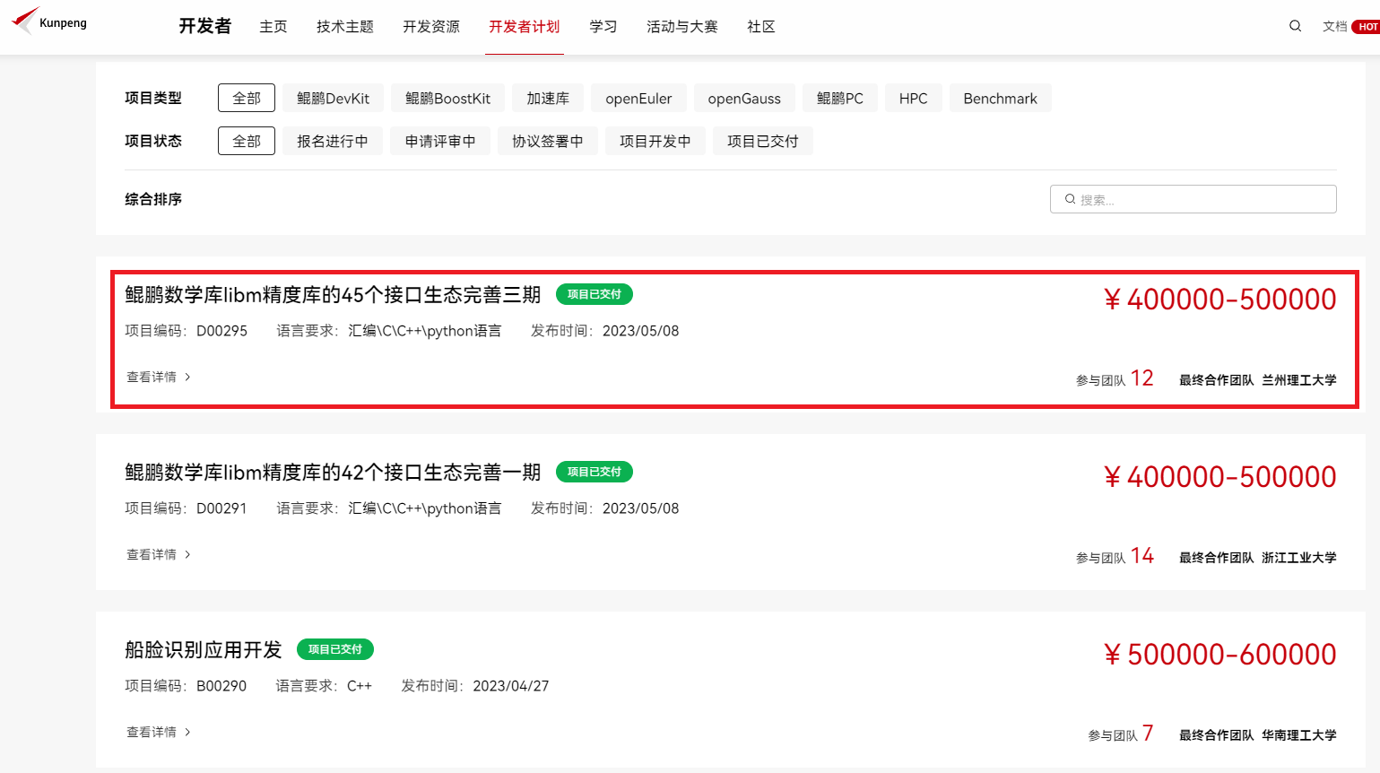 由我校計算機與通信學院趙宏教授團隊承擔的鯤鵬眾智計劃項目“鯤鵬數學庫libm精度庫的45個接口生態完善三期”通過交付驗收。鯤鵬眾智計劃是華為公司面向高校師生、企業開發者、個人開發者的鯤鵬生態眾創激勵計劃,旨在匯聚產業界智慧和力量,加速基礎軟件創新和突破,共促多樣性計算產業發展和生態繁榮。鯤鵬眾智計劃項目在華為鯤鵬網站公開發布,面向高校、科研院所、企業等組織以及個人開發者以招標方式征集開發團隊,完成項目的開發任務。