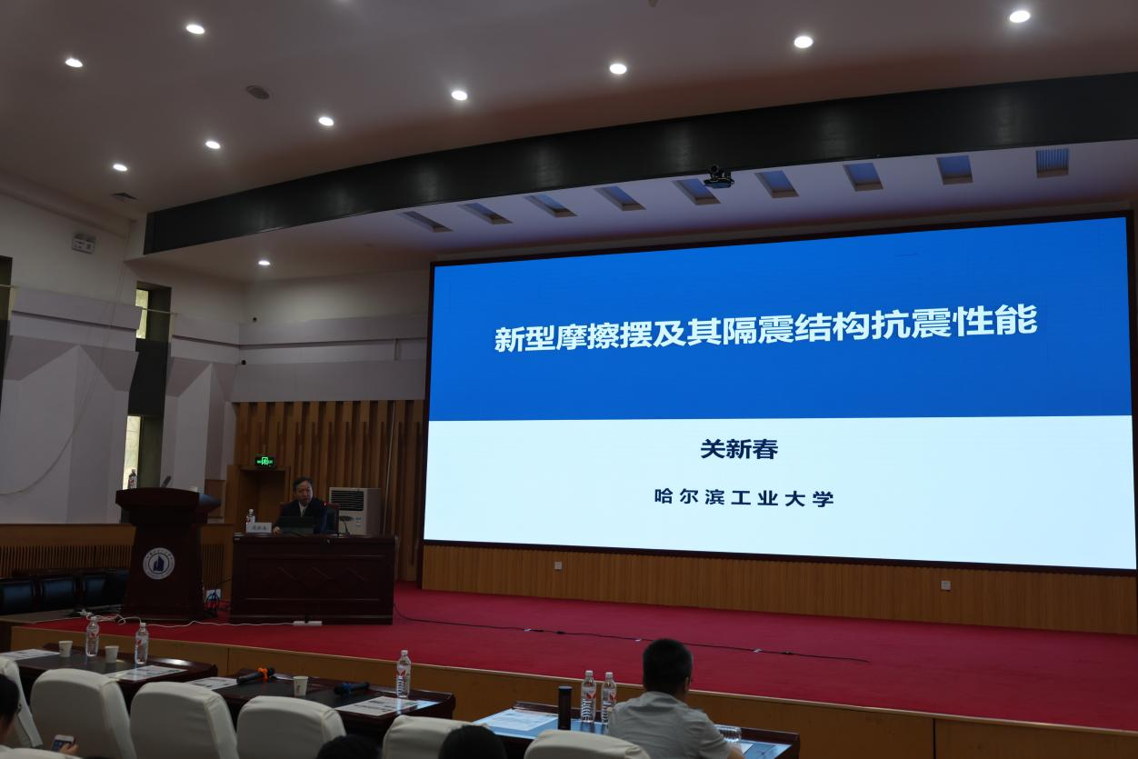 關新春教授做了題為“新型摩擦擺及其隔震結構抗震性能”的學術報告,報告介紹了一種工藝便捷、造價低廉的新型鋼管混凝土摩擦擺支座的設計思路、預制流程和力學性能以及基于該類型摩擦擺的隔震結構抗碰撞傾覆性能和抗連續倒塌的分析方法。針對現有隔震技術安全冗余度低、抗超大震能力儲備不足的問題,介紹了兩種新型隔震結構體系的概念、原理以及針對超大地震響應的部分數值模擬和試驗結果。