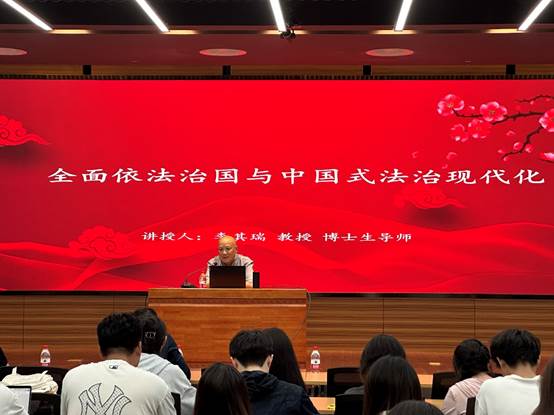 5月28日下午,西北政法大學法律、科技與人文高等研究院院長李其瑞教授應邀來校講學,主講紅柳法學大講堂第43期,作了題為“全面依法治國與中國式法治現代化”專題講座。學校有關職能部門和法學院師生近200人參加輔導報告,法學院院長賈小龍教授主持。
