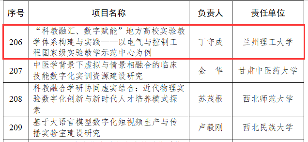 6月20日,教育部發布《教育部高等教育司關于公布實驗教學和教學實驗室建設研究項目立項名單的通知》(教高司函〔2024〕6號),電信學院丁守成教授團隊負責申報的《“科教融匯、數字賦能”地方高校實驗教學體系構建與實踐—以電氣與控制工程國家級實驗教學示范中心為例》項目獲得立項。