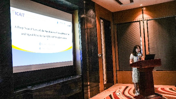 在本次會(huì)議中,計(jì)通學(xué)院的碩士生張星宇、楊清和周陸霞分別作了分會(huì)場(chǎng)報(bào)告。其中,張星宇同學(xué)參加了最佳學(xué)生論文競(jìng)賽,報(bào)告題目為《LSTM-Autoencoder for Faster-Than-Nyquist Optical Wireless MIMO Communication System》,介紹了LSTM自編碼器在超奈奎斯特光無線多輸入多輸出通信系統(tǒng)中的應(yīng)用。楊清同學(xué)的報(bào)告題目為《MHSA-CNN-Bi-LSTM based interference cancellation algorithm for MIMO-FTN-OWC system》,探討了基于MHSA-CNN-Bi-LSTM的干擾消除算法在MIMO-FTN-OWC系統(tǒng)中的應(yīng)用。周陸霞的報(bào)告題目為《A Deep Neural Network for Simultaneous Channel Estimation and Signal Detection in MIMO-OFDM-FSO System》,探討了深度神經(jīng)網(wǎng)絡(luò)在MIMO-OFDM-FSO系統(tǒng)中的信道估計(jì)和信號(hào)檢測(cè)的同時(shí)處理。