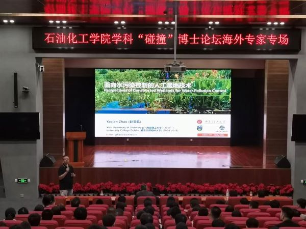 9月21日,石油化工學院邀請西安理工大學/愛爾蘭都柏林大學趙亞乾教授做客“學科‘碰撞’博士論壇”海外專家專場,作題為《面向水污染控制的人工濕地技術》的學術報告。石油化工學院副院長、環境工程系教師、環境工程專業研究生和本科生200余人參加了報告會。