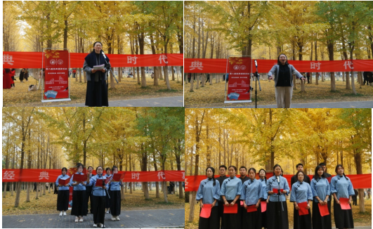 在誦讀經(jīng)典環(huán)節(jié),史俊杰老師和學(xué)生代表李曉文、張?jiān)併憥ьI(lǐng)大家對(duì)《共產(chǎn)黨宣言》、《關(guān)于費(fèi)爾巴哈的提綱》、《改造我們的學(xué)習(xí)》中的經(jīng)典片段進(jìn)行了誦讀,陳紅老師帶領(lǐng)大家一起合唱了《沒有共產(chǎn)黨就沒有新中國》。誦讀結(jié)束后,本科同學(xué)們帶來了詩朗誦《人的自豪》,馬克思主義學(xué)院研一新生表演了《覺醒年代》《為真理而奮斗》等精彩節(jié)目,活動(dòng)現(xiàn)場氣氛熱烈。