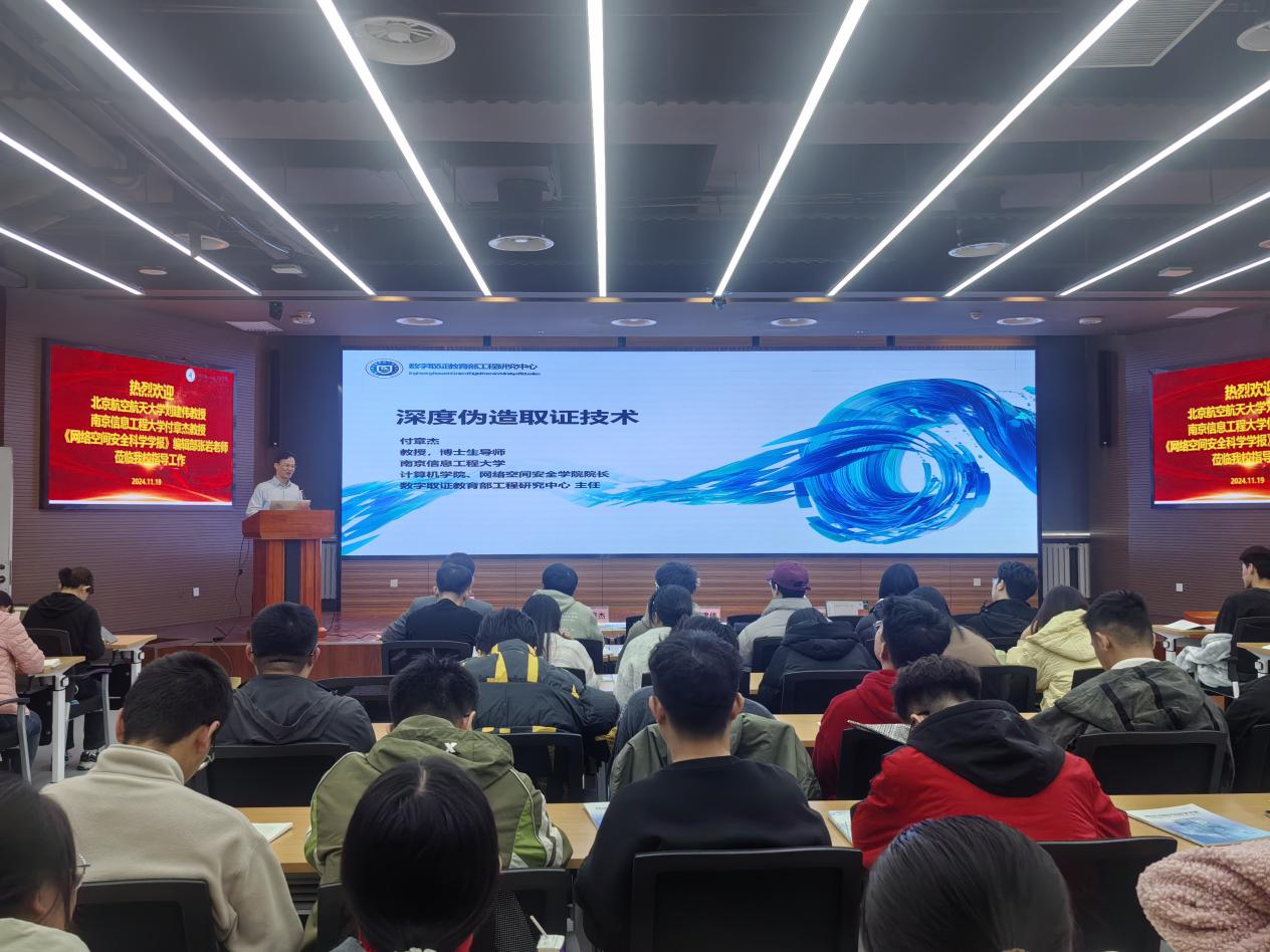 11月19日上午,應(yīng)計通學(xué)院邀請,北京航空航天大學(xué)劉建偉教授,南京信息工程大學(xué)的付章杰教授在彭家坪校區(qū)圖書館109報告廳為學(xué)院師生開展了網(wǎng)絡(luò)空間安全學(xué)科學(xué)術(shù)報告會。學(xué)院院長馮濤主持報告會,學(xué)院網(wǎng)絡(luò)空間安全方向教師、研究生參加。