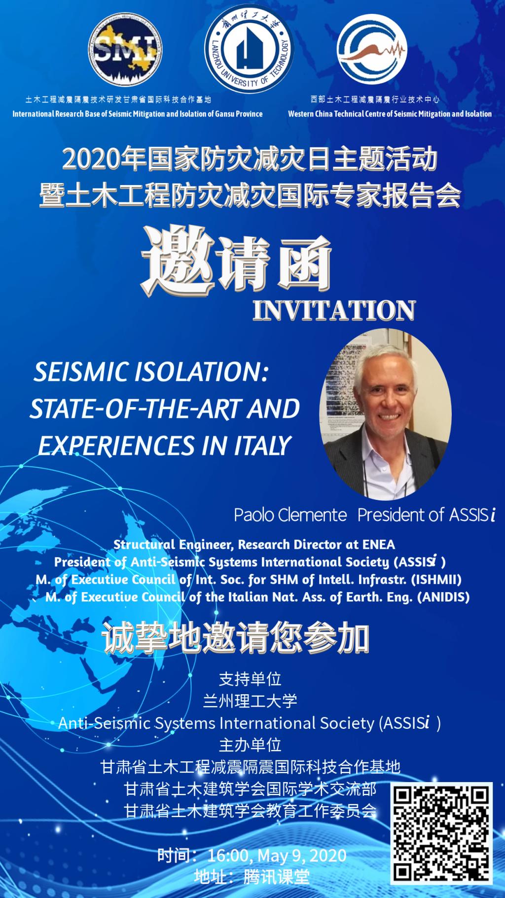 應我校黨委副書記、校長芮執元邀請,國際減震控制學會(ASSISi)主席、意大利能源環境及新技術研究院(ENEA)地震工程部門主任Paolo Clemente博士將做客我校承辦的2020年國家防災減災日土木工程國際知名專家線上報告會。