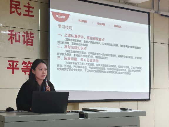 為了進學院學風建設,充分發揮朋輩引領作用,經濟管理學院于11月14日舉辦了“朋輩引領——學長學姐有話說”主題活動,國家獎學金獲得者、2021級金融學1班余欣怡,校級優秀學生干部、全國企業競爭模擬大賽一等獎獲得者、第10屆“學創杯”總決賽特等獎獲得者、2021級市場營銷1班張耀強,國家獎學金獲得者、2021級會計學2班楊清芳,兩屆校三好學生標兵、校一等獎獎學金獲得者、2022級國際經濟與貿易2班李欽元等四名同學進行了學習經驗分享,2024級全體學生參加了活動。
