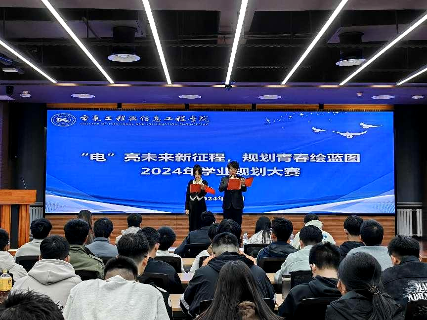 為進一步打造“尚學電信”品牌文化,推動優良學風建設,引導學生及早樹立學業規劃理念,明確學業發展目標,以昂揚奮進的青春風貌迎接黨代會的召開,11月15日晚,電信學院在彭家坪校區圖書館106報告廳舉辦“‘電’亮未來新征程,規劃青春繪藍圖”學業規劃大賽。電信學院黨委副書記劉煒、土木學院輔導員任海鵬、電信學院輔導員逯瀅、朱毅林及學生代表擔任評委。