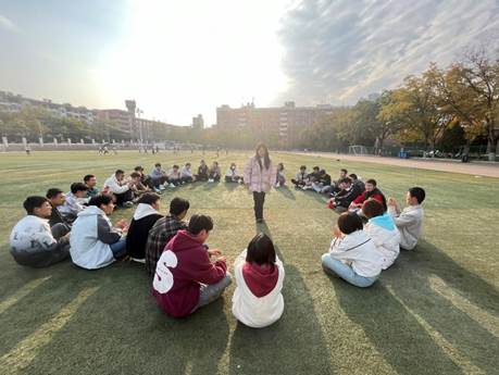 在2024年新生心理團體輔導活動中,同學們坐在本部的操場上,陽光灑射在他們的臉上,新生們普遍感受到了前所未有的溫暖與歸屬感。活動初期,略帶羞澀和緊張的他們,在破冰游戲的帶動下,迅速打破了彼此間的陌生感,笑聲與歡呼聲此起彼伏,空氣中彌漫著輕松愉悅的氛圍。