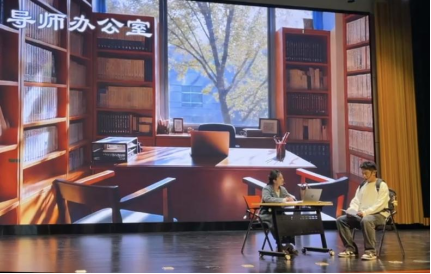 決賽現(xiàn)場氣氛熱烈,各隊伍表現(xiàn)精彩。理學(xué)院作品《再見迷霧》由研究生許婭捷、賀藝聞、王鵬超等同學(xué)傾情演繹,作品以研究生李華科研心態(tài)的變化為線索,深刻展現(xiàn)了大學(xué)生面對生活與學(xué)業(yè)壓力時的堅韌與智慧,傳遞了積極向上的生活態(tài)度和人生智慧,劇中塑造的導(dǎo)師、舍友、同學(xué)等角色細(xì)膩展現(xiàn)了在研究生成長過程中的引導(dǎo)與支持,引發(fā)了觀眾們的深刻共鳴。