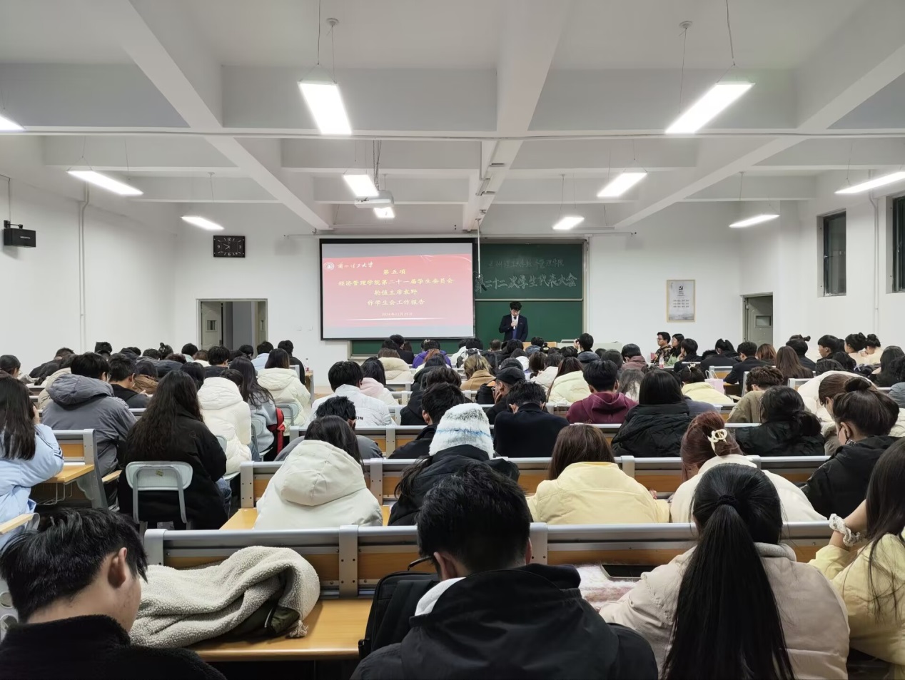 11月25日晚,經濟管理學院第二十二次學生代表大會在彭家坪校區抒望樓107教室召開,學院黨委副書記王翀、輔導員許丹、校學生會代表王啟寒、兄弟學院代表以及全院150名學生代表出席了本次會議。