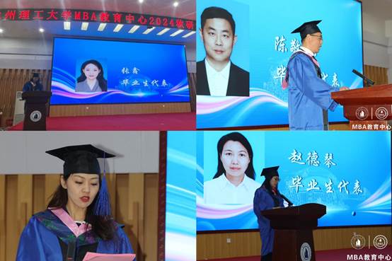 典禮在莊嚴(yán)的國(guó)歌聲中拉開序幕,畢業(yè)生代表2022級(jí)MBA張?chǎng)巍②w德琴、陳敬旭同學(xué)分別發(fā)言,分享了自己收獲滿滿的學(xué)習(xí)經(jīng)歷,表達(dá)了對(duì)學(xué)校、老師和同學(xué)的感謝和祝福,號(hào)召全體畢業(yè)生在新時(shí)代浪潮中勇敢前行,銳意進(jìn)取,與祖國(guó)同向同行。