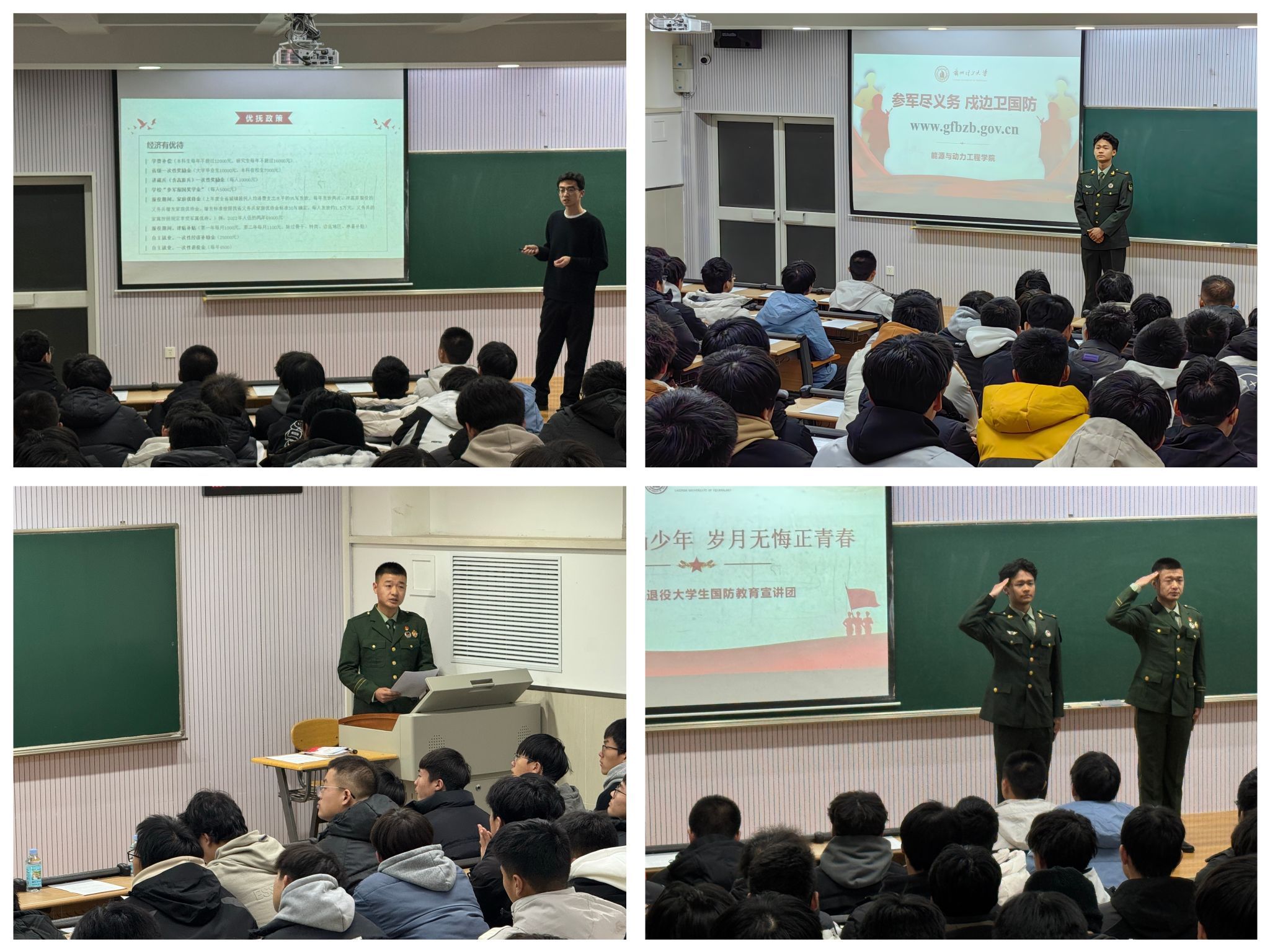 為全面做好2025年大學生征兵工作,扎實開展上半年征兵宣傳工作,幫助學生全面了解征兵政策,激發畢業生參軍報國熱情,12月10日-17日,能動學院分專業、多場次召開2025屆畢業生征兵動員暨政策宣講會。