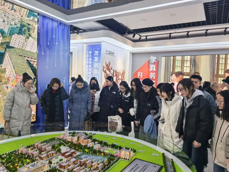展廳以視頻、圖文和數字互動等多種方式,全方位、多角度地全景展示了學校的辦學歷史及發展成就,介紹了學校在各個歷史時期的重大事件和標志性成果,深度解讀了學校的辦學特色和學科優勢。通過數字互動,師生們在沉浸式體驗收獲快樂的同時,深刻體會到了科技創新對學校發展的巨大推動作用。沙盤模型展示讓師生們更加熟悉了校園環境,增強了師生們的歸屬感和身份認同感。
