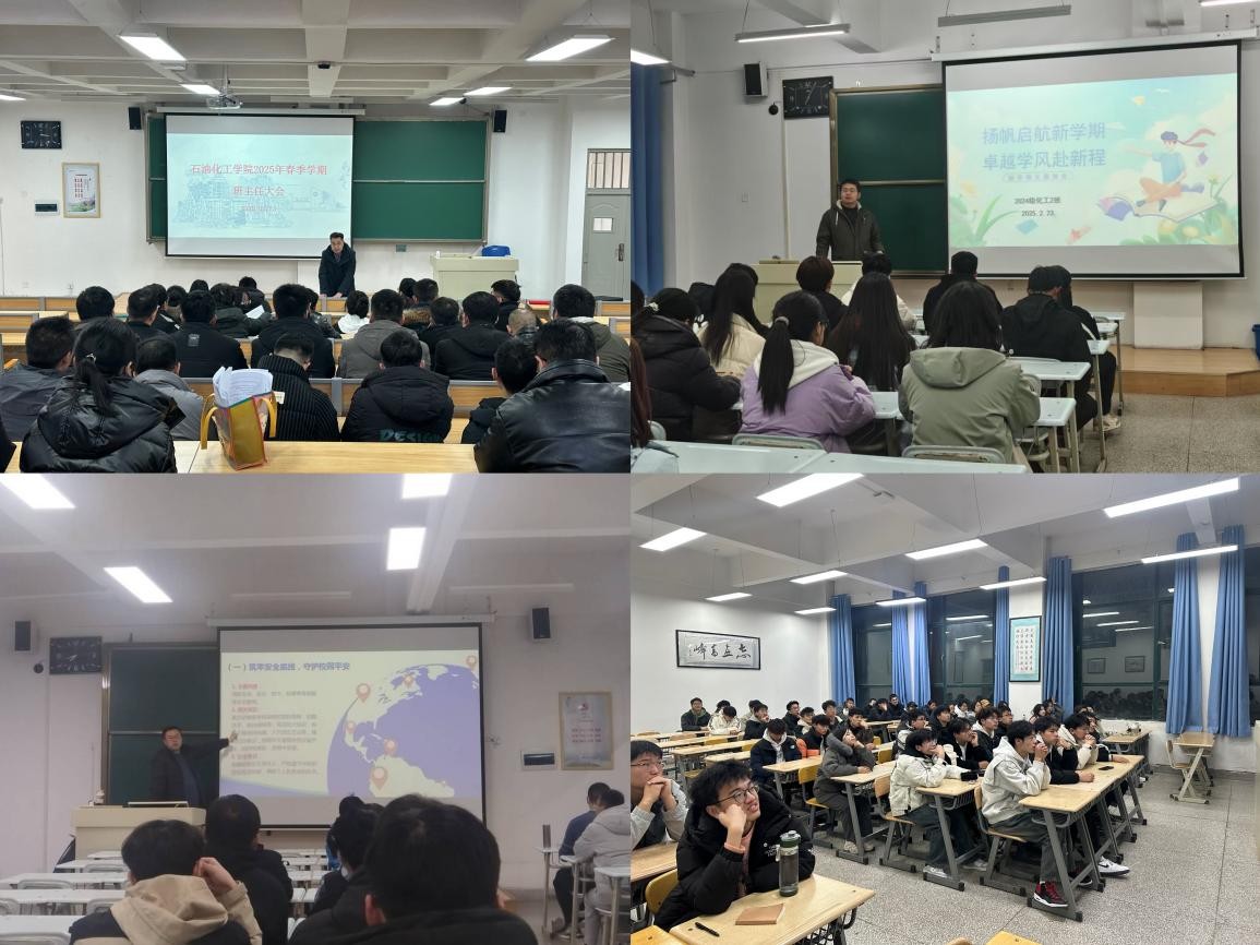 2025年春季學期伊始,石油化工學院通過主題班會,年級大會,黨支部“三會一課”,學院領導、輔導員及班主任進學生社區等形式,開展了系列安全教育及學風建設工作。
